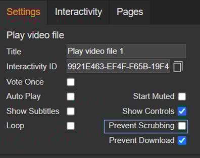 You can prevent someone from skipping through a video by selecting the video module on your page and ticking the 'Prevent Scrubbing' checkbox in the Settings palette.