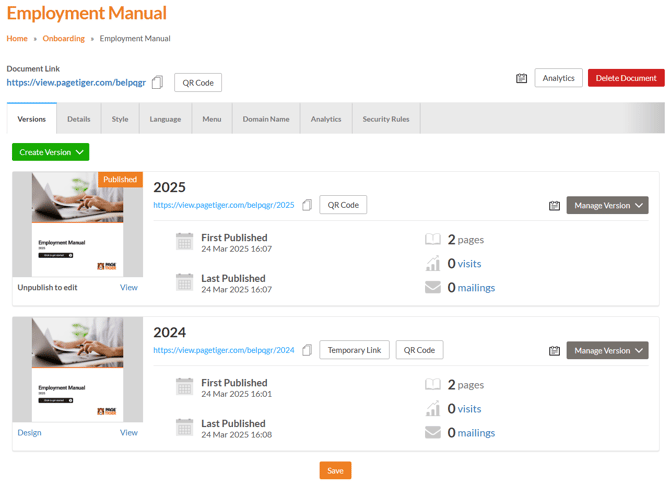 When a new employee joins PageTiger, they undergo an onboarding process that includes reading and acknowledging several key documents. These include the employment manual, clear desk policy, and homeworking policy.
