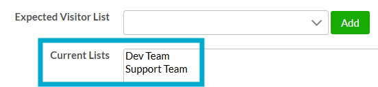 Select an Expected Visitor List from the available drop-down list.