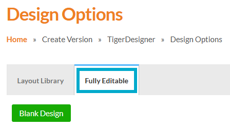 • When creating a new document in TigerDesigner, you’ll now see the Fully Editable option listed first. This change is designed to encourage you to use this type of design, as it offers more flexibility and access to Components, helping you stay on brand.