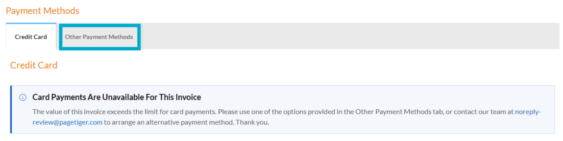 Please use the 'Other Payment Methods' tab for payments greater than £10,000.
