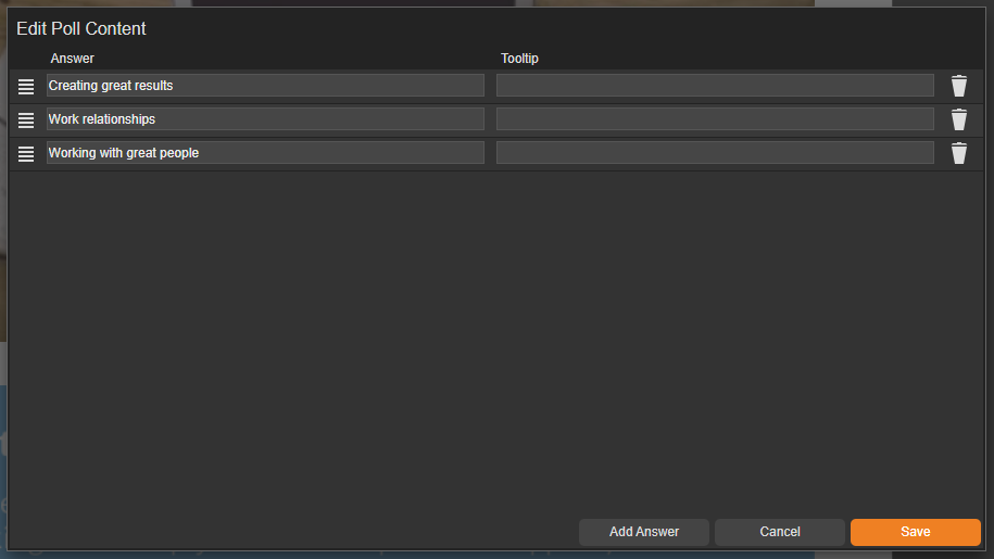 The 'Edit Poll Content' box will open again ready for you to type the poll answer into the 'Answer' field.