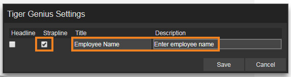 In the below example the strapline of a story panel has been selected so the TigerGenius User can input the name of a new starter. Enter a Title and Description to help make it easier for your TigerGenius User when they are completing the fields in TigerGenius.