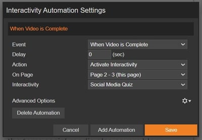 Ryan wants to assess his staff’s understanding of a Social Media Policy covered in a training video. Using Automation, he sets up an assessment to automatically launch as soon as the video ends - no manual interaction required from the user. Simple!