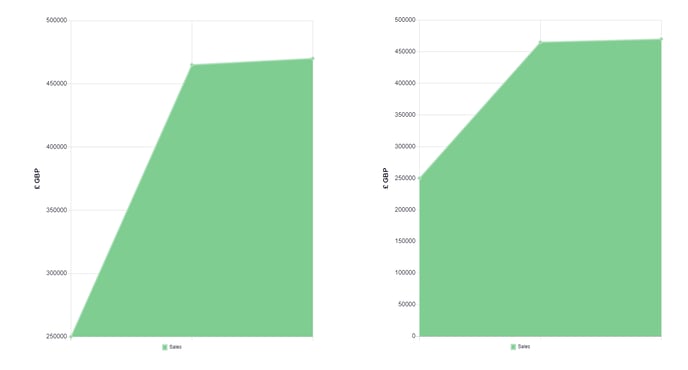 Selected by default, this option will display the data from zero on a chart. It can be unselected if the data does not begin at 0, which can make the data clearer to read. This works well with some Area Charts.