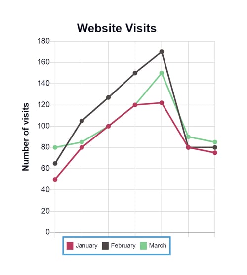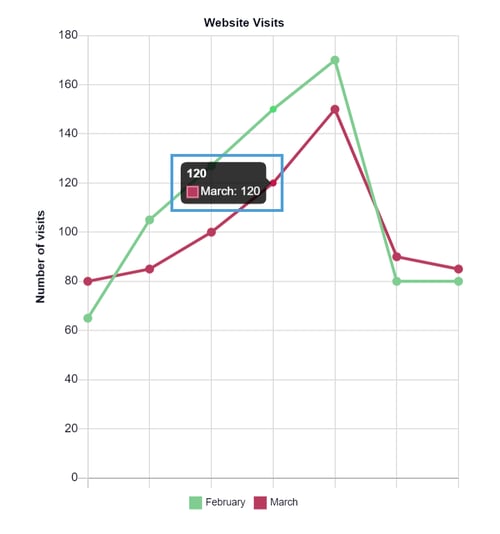 The Tooltip below shows that there were 120 website visits in March.