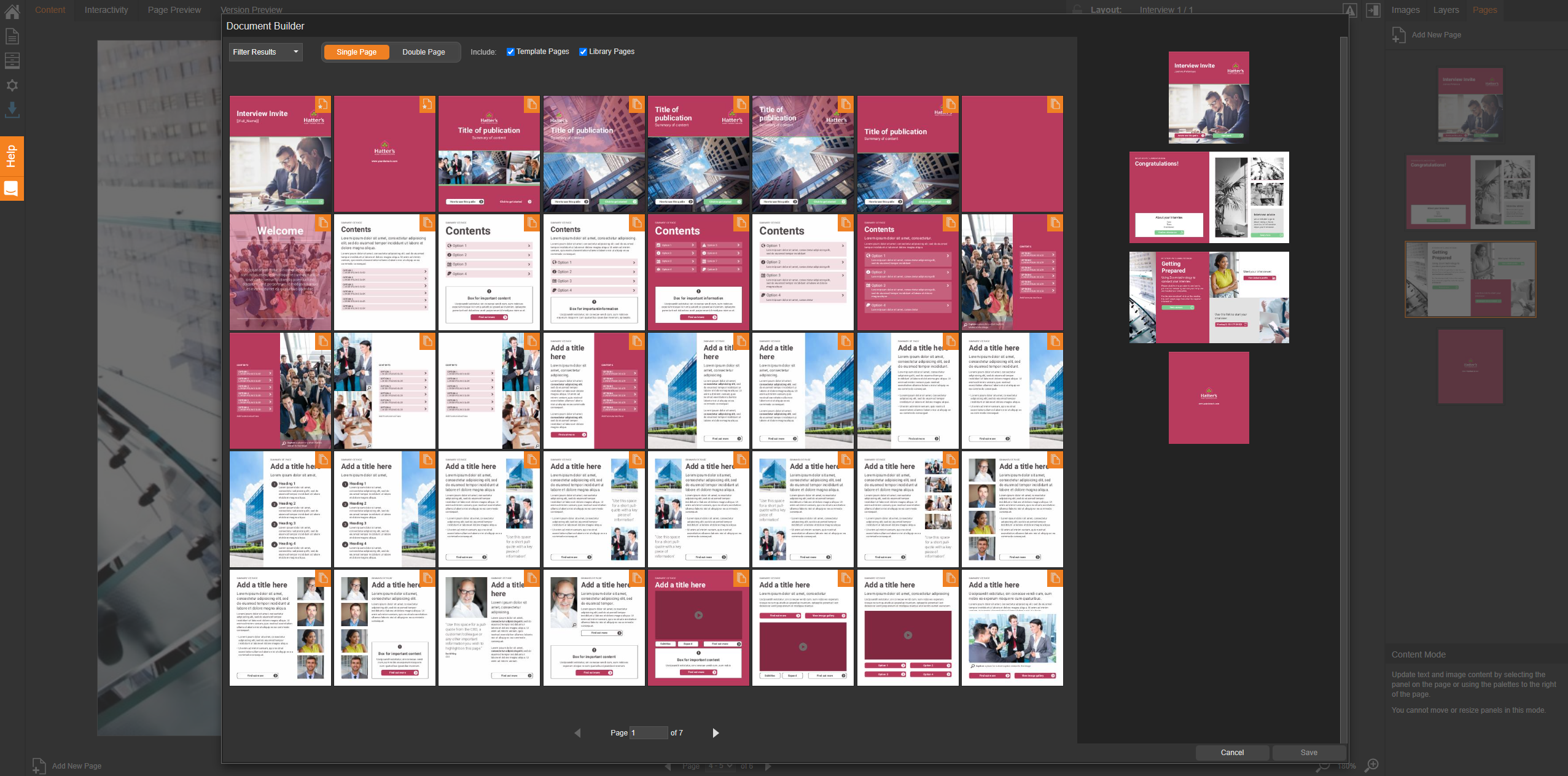 Add and manage pages in your document using the Document Builder; it's quick to use, and will help you to create your desired design in a matter of clicks.
