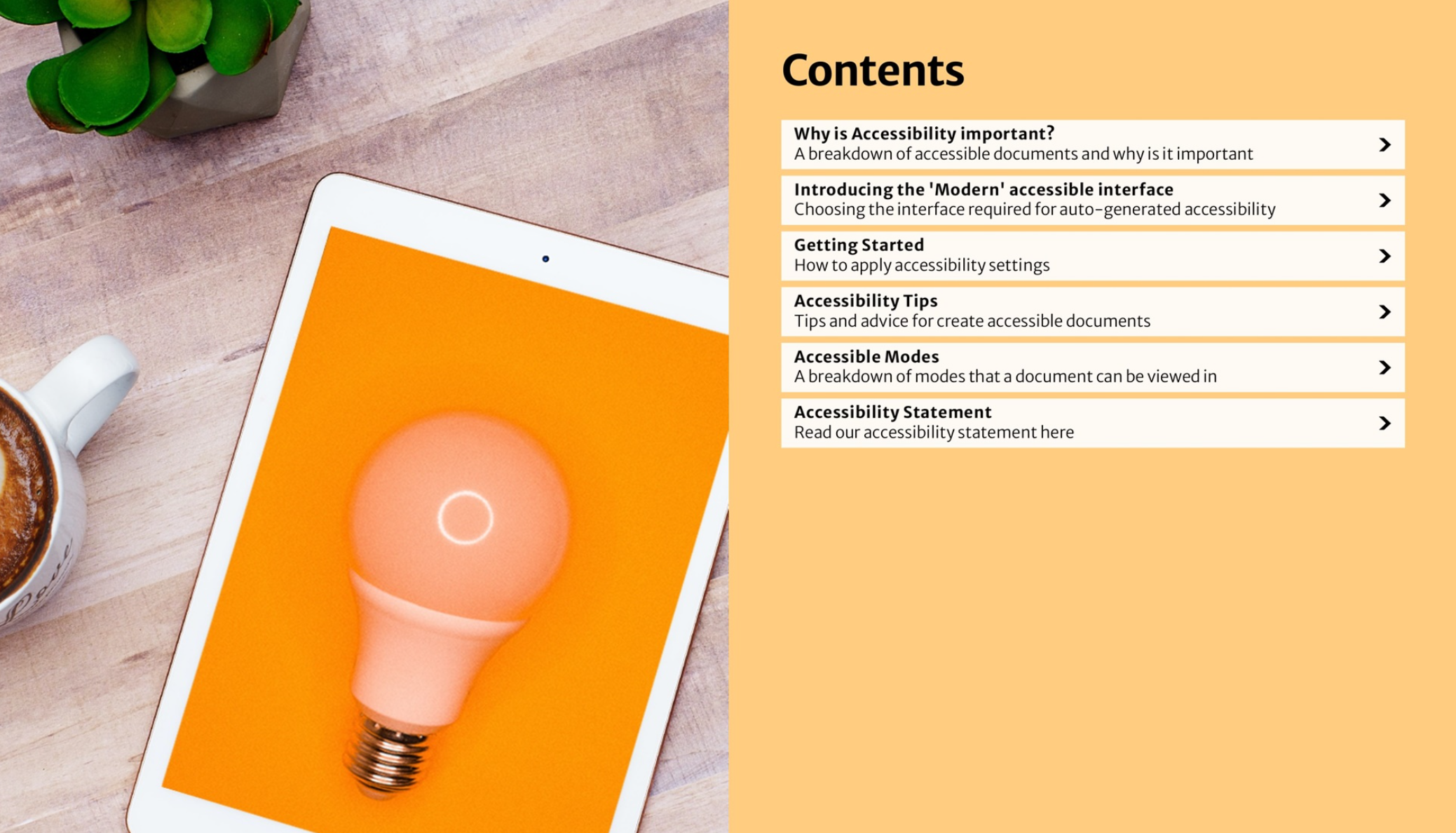 Accessible Documents help to ensure a positive experience for all users, regardless of any visual disabilities. With Accessibility mode, no one is left out of the experience, as everyone can access and engage with the content.