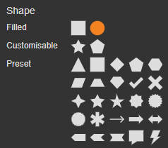 Choose from the range of shapes available - simply click on the shape type and the panel will update.