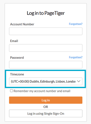 Analytics will reflect the time zone you select when signing into your PageTiger Admin account, so the data matches your preference.