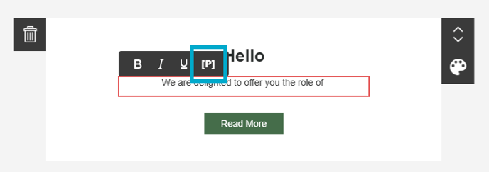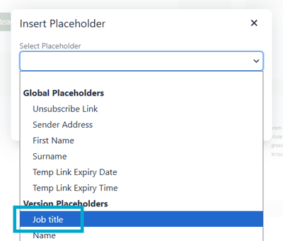 When a new mailing is created for this version, the placeholders can be added, which will automatically populate with the text from the version.