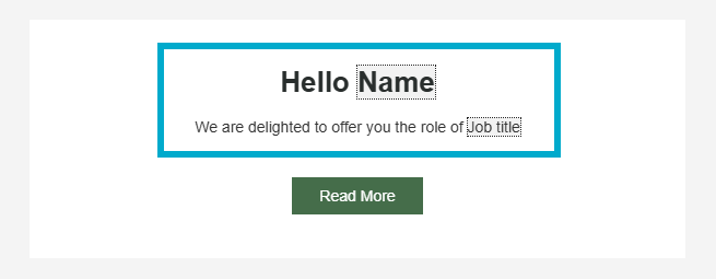- When the mailing is sent, the placeholders will be populated with the text from the version that you are distributing.