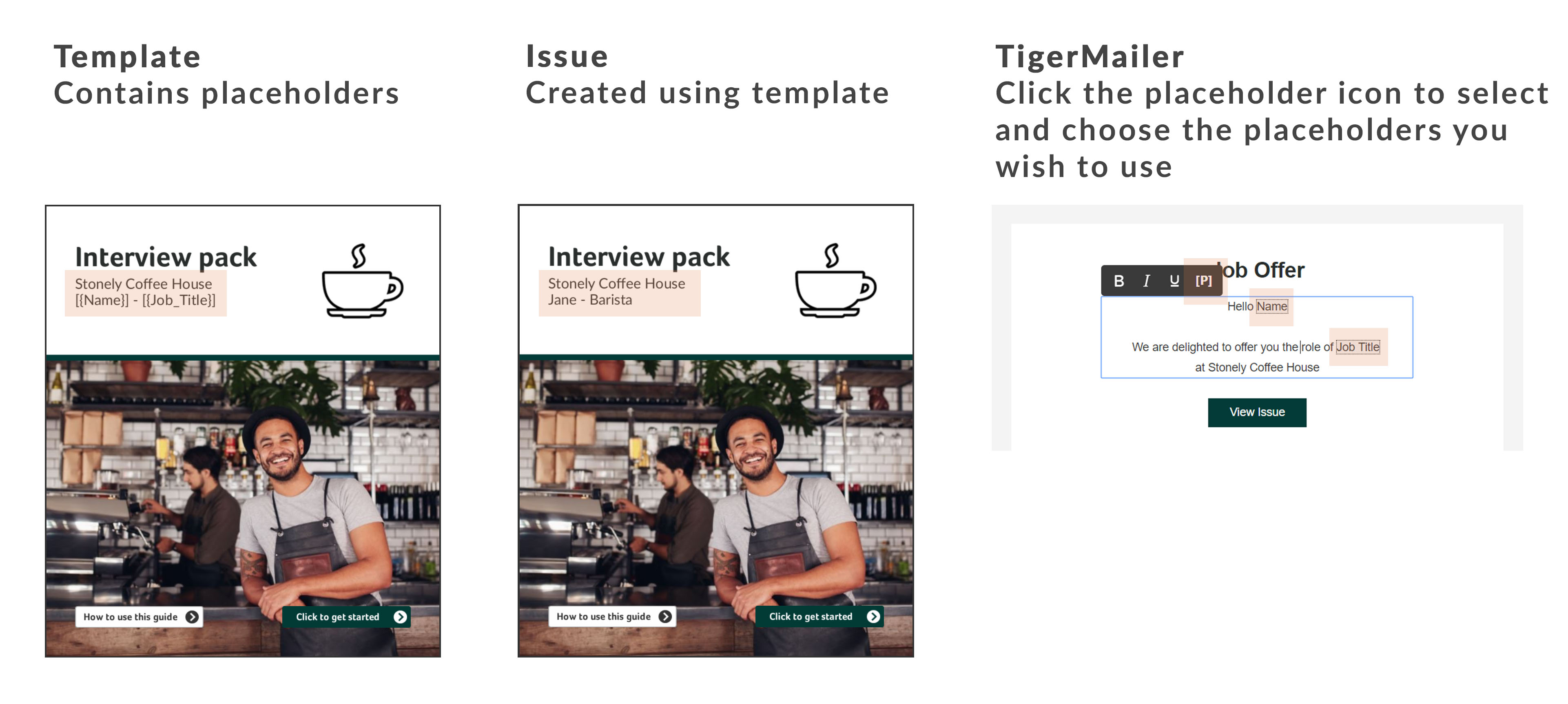 If you are using TigerMailer to distribute a version that was created from a template with placeholders, the same placeholders can be used in the mailing.